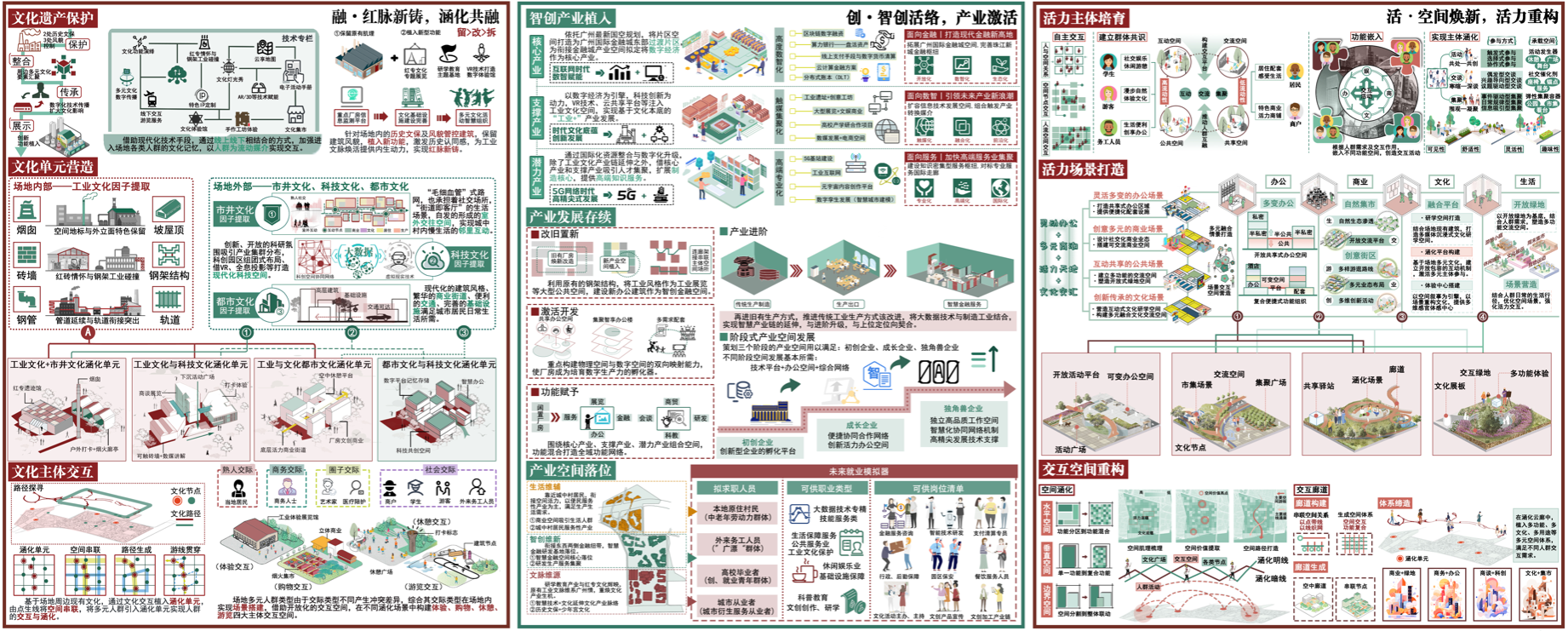 研究提出的解决方案突破了传统保护模式的局限,既通过活化利用保留了工业建筑的空间特质和历史文脉,又借助智能模拟实现了遗址功能与城市发展的有机衔接。在策略生成方面包括场地空间活化、文化场景营造、产业体系打造、韧性安全保障在内的系列规划,助力城市在发展中留住记忆,在创新中延续文脉。