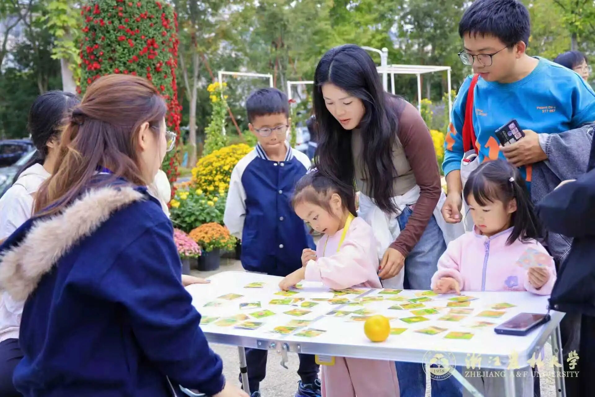 本次菊花展还包含一系列游戏活动。如:“菊花密语”寻花游戏、“植物拓印”体验、“菊花气味盲盒”挑战、“菊花诗词九宫格”拼图、古法菊囊等手作体验。通过沉浸式的体验这些活动,同学们对菊这一流传千年之中华传统意象的内涵有了更深的了解。这些富有参与感的活动,将现场气氛推向高潮。同学们的脸上也洋溢着笑容。