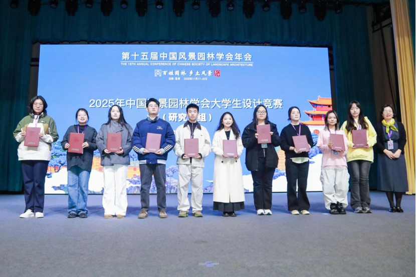 此外,我院学生也积极参会,取得了丰硕成果。中国风景园林学会大学生设计竞赛中,设计作品《鸭鸭茭相乐——全域旅游、循环共生:奏响大洋镇现代化更新强音》(作者:王聪颖、陆霜、单艺沁、孙景艳、朱佳瑶,指导老师:陈楚文、金荷仙)、《15分钟暗夜处方:面向城市自然难民的夜间疗愈系统构建》(院校:浙江工业大学、浙江农林大学,作者:郑艳宇、严丹颖、朱润泽、王瑾、毛圣云,指导老师:金阳、陈曦)获得了研究生组荣誉作品,《岩生万象,故事新生一一基于农文旅融合的叙事性岩宕空间景观设计》(作者:诸钰滢、叶欣瑶、马欣雨、李可宁、高佳韵,指导老师:张蕊、洪泉)获得了本科生组卓越作品。