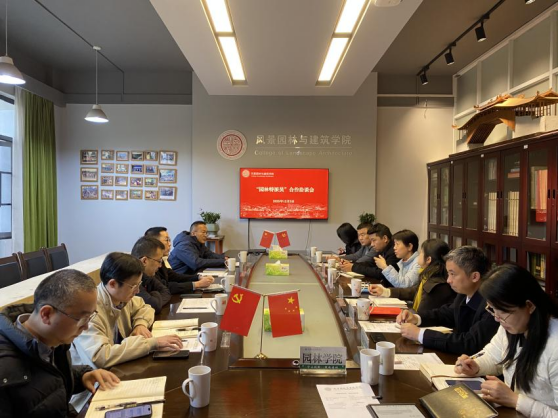 10月25日在浙江农林大学第五届生态节“生态嘉年华”暨长三角菊花展联展启动仪式上,园林学院与各局负责人分别上台签约《园林特派员服务协议》。园林学院持续深化校地合作,于12月3日召开“园林特派员”合作洽谈会,校党委宣传部、杭州市规划和自然资源局临安分局、杭州市临安区住房和城乡建设局、杭州市临安区农业农村局、杭州市临安区综合行政执法局相关人员、园林学院教师代表参会,会议由院党委书记徐丽华主持。
