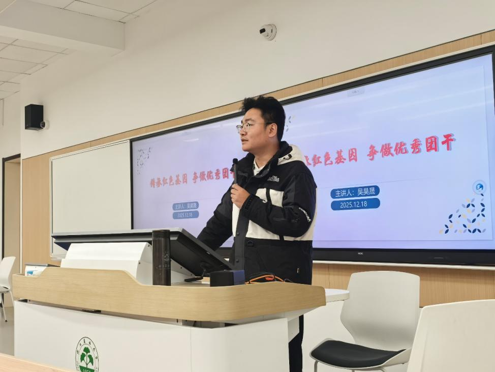 12月18日晚,园林学院第九届青马工程第三课于东湖校区一号教学楼415教室顺利举行。本次课程由学生会秘书长吴昊晟老师主讲,课程主题为“传承红色基因,争做优秀团干”。