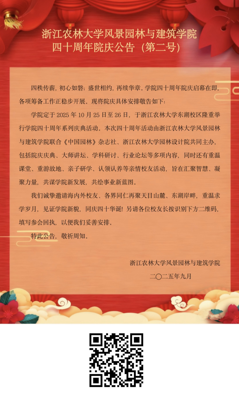 浙江农林大学风景园林与建筑学院四十周年院庆公告(第二号)
