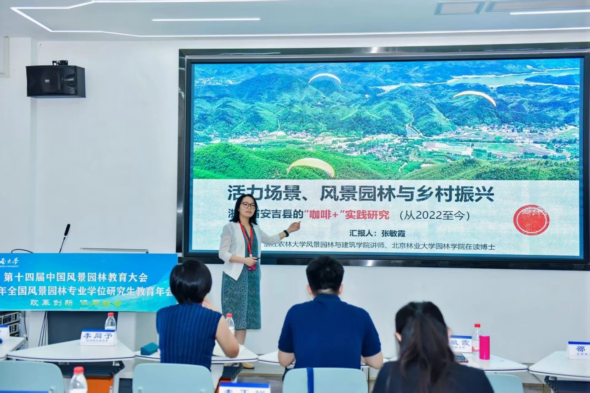 此外,徐斌教授在课程思政论坛做了题为“情景交融、筑梦浙乡:浙江农林大学风景园林类专业乡建育人探索实践”的报告,聂文彬老师与张敏霞老师在青年教师论坛分别做了题为“基于扰动情景模拟的城市生态网络韧性评估与优化——以南京市为例”和“活力场景、风景园林与乡村振兴——浙江省安吉县的‘咖啡+’实践(从2022至今)”的报告。上述报告均结合我院风景园林的教育实践,介绍了我院以真实景观项目为载体、引导学生在乡村建设实践中融汇对祖国的热爱、对环境的保护、对文化的传承。